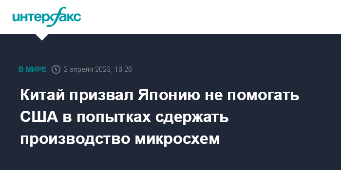 Китай призвал Японию не помогать США в попытках сдержать производство микросхем
