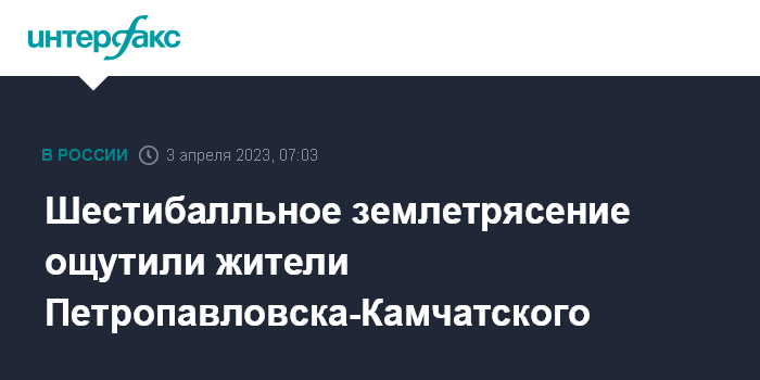 Москва. 3 апреля. INTERFAX.RU - Сейсмологи зарегистрировали землетрясение магнитудой 5,7 произошедшее в акватории Авачинского залива в 48 км от Петропавловска-Камчатского, сообщает Камчатский филиал Единой геофизической службы РАН.