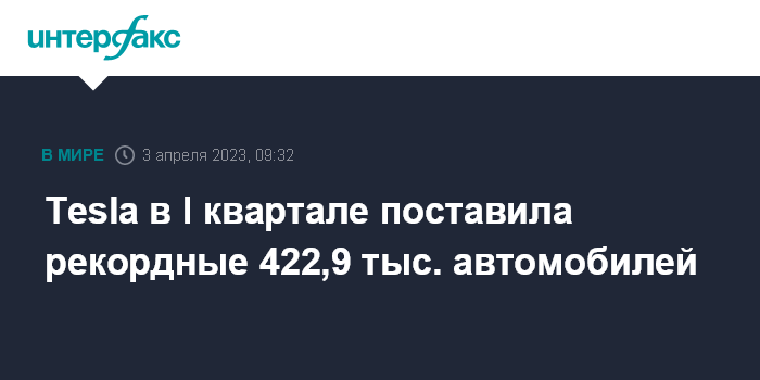Tesla в I квартале поставила рекордные 422,9 тыс. автомобилей