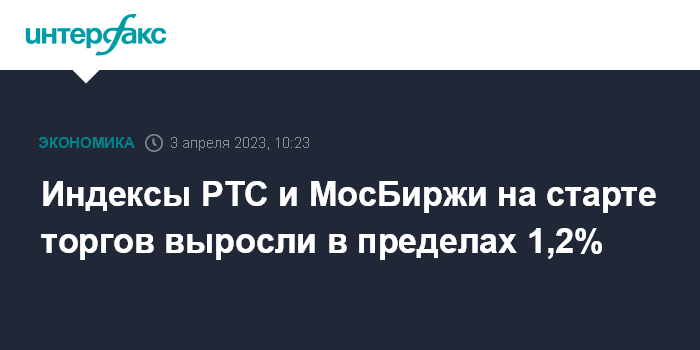 Индексы РТС и МосБиржи на старте торгов выросли в пределах 1,2%