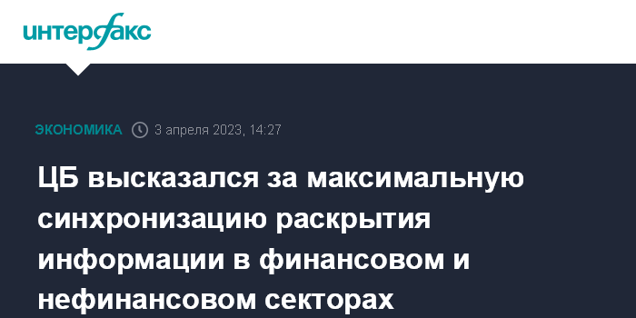 ЦБ высказался за максимальную синхронизацию раскрытия информации в финансовом и нефинансовом секторах
