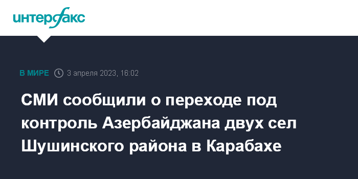 СМИ сообщили о переходе под контроль Азербайджана двух сел Шушинского района в Карабахе