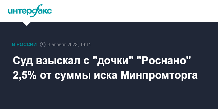 Суд взыскал с "дочки" "Роснано" 2,5% от суммы иска Минпромторга