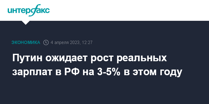 Москва. 4 апреля. INTERFAX.RU - Президент РФ Владимир Путин заявил о планируемом в этом году росте реальных зарплат в стране.