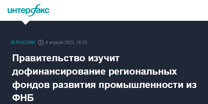 Правительство изучит дофинансирование региональных фондов развития промышленности из ФНБ