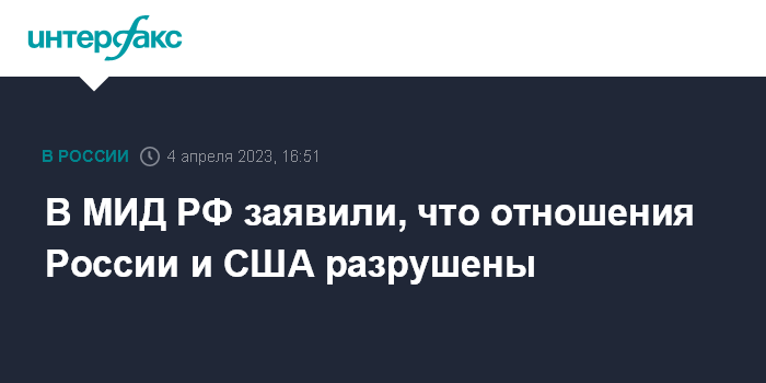 В МИД РФ заявили, что отношения России и США разрушены