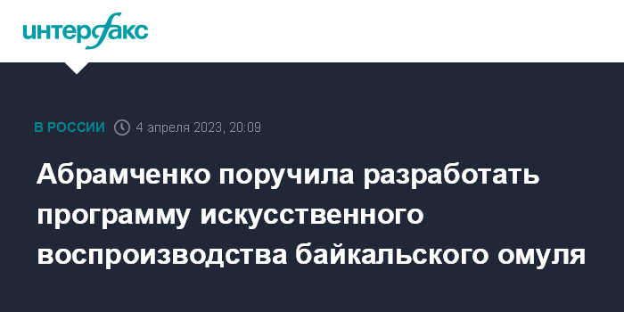 Москва. 4 апреля. INTERFAX.RU - Вице-премьер Виктория Абрамченко по итогам правительственной комиссии по вопросам охраны озера Байкал поручила разработать комплексную программу искусственного воспроизводства байкальского омуля.