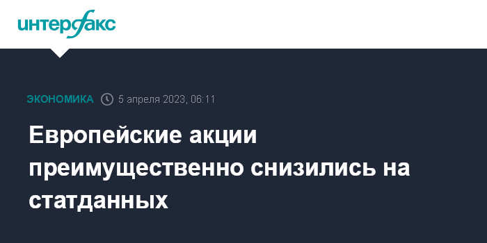 Москва. 5 апреля. INTERFAX.RU - Фондовые индексы стран Западной Европы завершили преимущественно в минусе торги во вторник, инвесторы оценивали макроэкономические данные и корпоративные новости.
