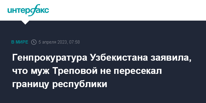 Генпрокуратура Узбекистана заявила, что муж Треповой не пересекал границу республики
