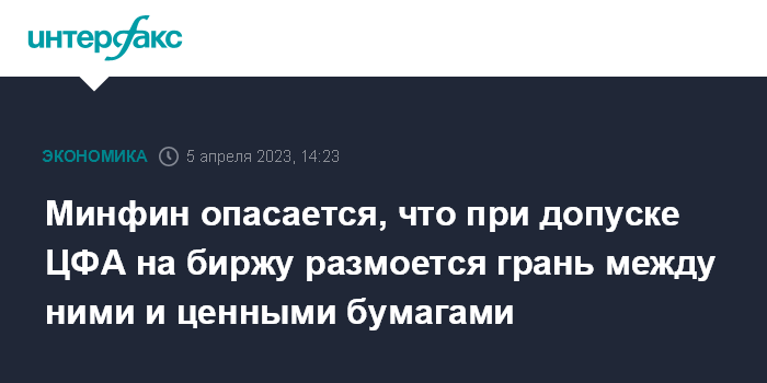 Москва. 5 апреля. INTERFAX.RU - Допуск цифровых финансовых активов (ЦФА) к биржевым торгам в целом поддерживается, но может привести к размытию отличий между ЦФА и ценными бумагами, сообщил журналистам директор департамента финансовой политики Минфина Иван Чебесков.