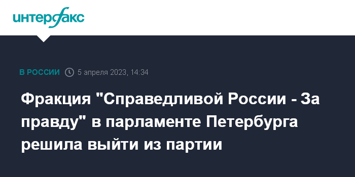 Москва. 5 апреля. INTERFAX.RU - Фракция "Справедливой России - За правду" в петербургском парламенте сообщила о выходе из рядов партии в полном составе, передал корреспондент "Интерфакса" в среду.