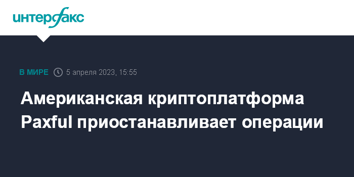 Москва. 5 апреля. INTERFAX.RU - Американская платформа для торговли биткоинами Paxful приостанавливает деятельность, передает Bloomberg со ссылкой на сооснователя компании Рэя Юссефа.
