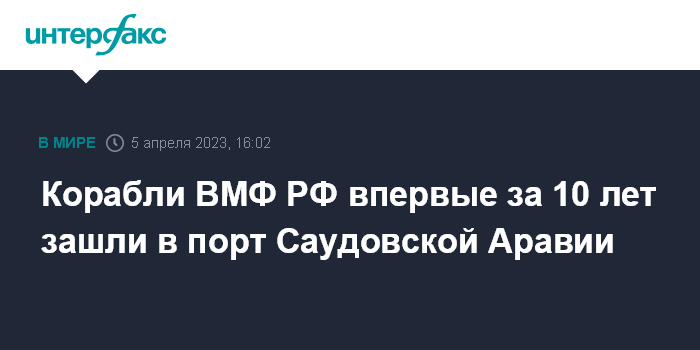 "Ранее корабли ВМФ России совершали заходы в порты Королевства Саудовская Аравия около 10 лет назад", - говорится в сообщении Северного флота.