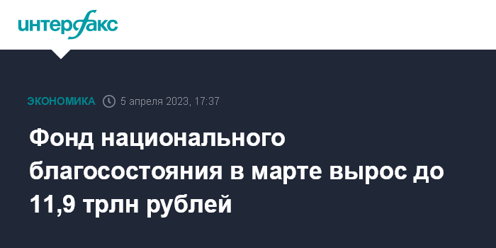 Фонд национального благосостояния в марте вырос до 11,9 трлн рублей