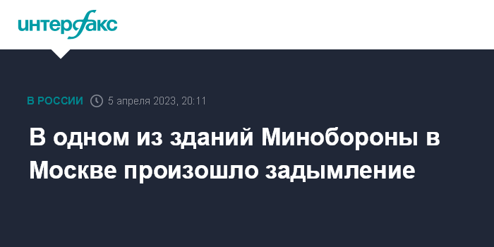 Москва. 5 апреля. INTERFAX.RU - В Москве в одном из административных зданий Минобороны произошло задымление, сообщили в военном ведомстве. Очаг задымления потушен, никто не пострадал.