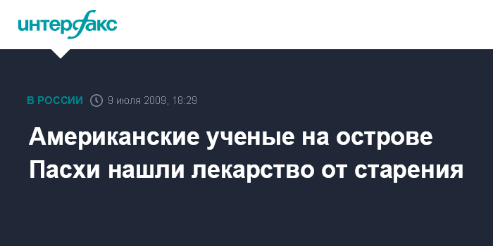 Москва. 9 июля. INTERFAX.RU - Вещество рапамицин, найденное в почве на Острове Пасхи может помочь в борьбе с процессами старения в человеческом организме, сообщает британская телерадиокорпорация Би-би-си со ссылкой на заявление американских ученых.