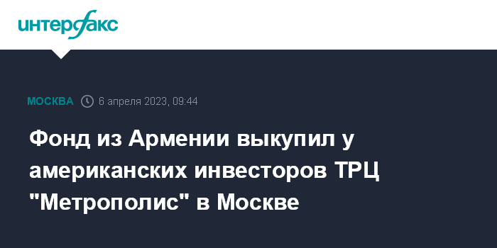 Фонд из Армении выкупил у американских инвесторов ТРЦ "Метрополис" в Москве
