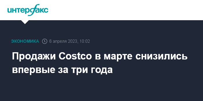 Москва. 6 апреля. INTERFAX.RU - В марте 2023 года сопоставимые продажи Costco Wholesale, оператора крупнейшей в США сети клубных магазинов-складов, снизились на 1,1% в годовом выражении, сообщила компания. Это первое сокращение показателя почти за три года - с апреля 2020 года, отмечает MarketWatch.