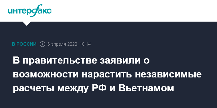 В правительстве заявили о возможности нарастить независимые расчеты между РФ и Вьетнамом