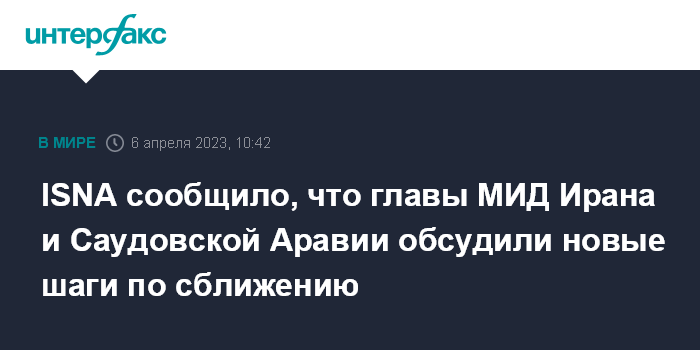 ISNA сообщило, что главы МИД Ирана и Саудовской Аравии обсудили новые шаги по сближению