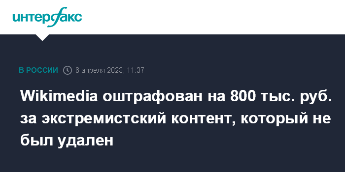 Wikimedia оштрафован на 800 тыс. руб. за экстремистский контент, который не был удален