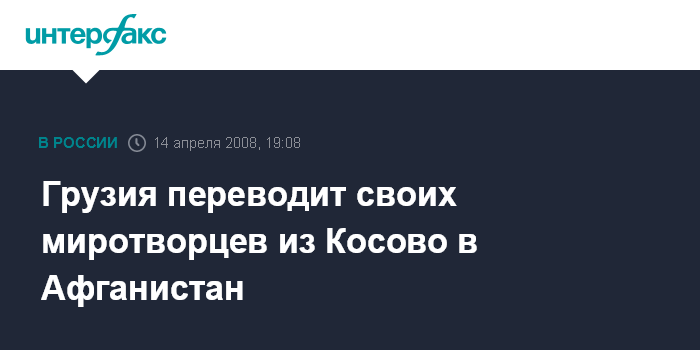 Грузия переводит своих миротворцев из Косово в Афганистан