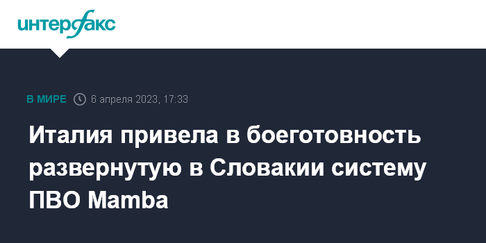 Италия привела в боеготовность развернутую в Словакии систему ПВО Mamba