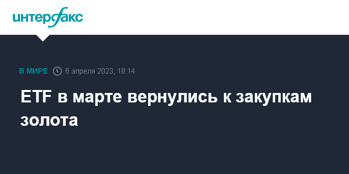 Москва. 6 апреля. INTERFAX.RU - Мировые ETF (exchange traded funds – биржевые инвестиционные фонды) в марте впервые за десять месяцев показали приток золота, он составил 32,1 тонны на $1,9 млрд, подсчитал World Gold Council (WGC).