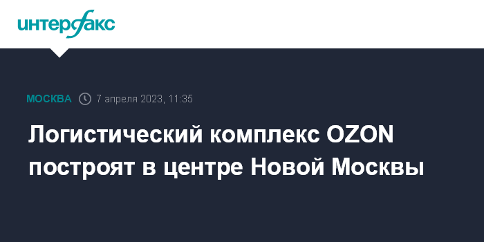 Москва. 7 апреля. INTERFAX.RU - Логистический комплекс для маркетплейса OZON появится в районе Новые Ватутинки. Об этом сообщил заммэра Москвы по вопросам градостроительной политики и строительства Андрей Бочкарев в пятницу.