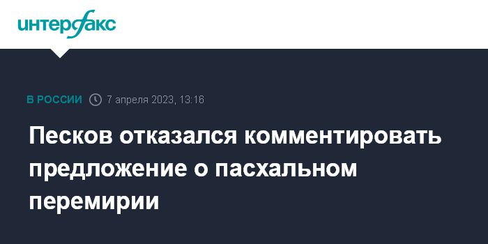 Москва. 7 апреля. INTERFAX.RU - В Кремле заявили, что не видели официальных заявлений Ватикана с предложением объявить пасхальное перемирие на Украине, поэтому оставили без комментариев соответствующую информацию СМИ.