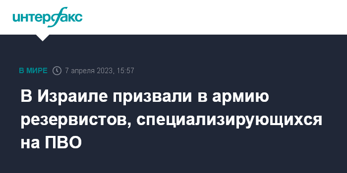 Москва. 7 апреля. INTERFAX.RU - Начальник Генштаба Израиля Герци Халеви распорядился призвать на службу резервистов, которые специализируются на противовоздушной обороне, сообщают в пятницу израильские СМИ.