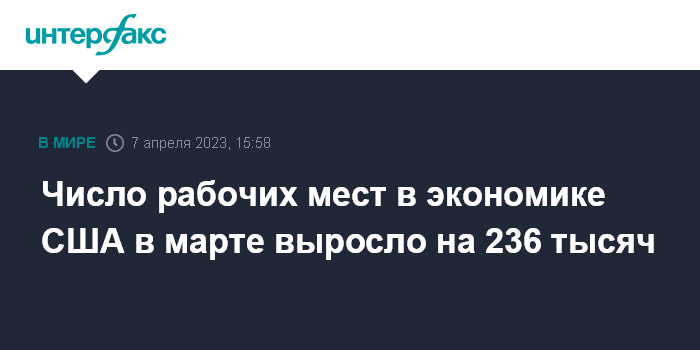 Число рабочих мест в экономике США в марте выросло на 236 тысяч