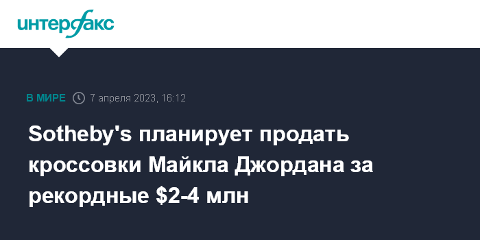 Sotheby's планирует продать кроссовки Майкла Джордана за рекордные $2-4 млн