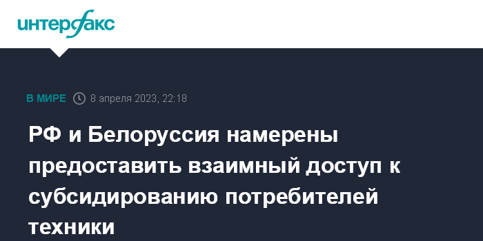 РФ и Белоруссия намерены предоставить взаимный доступ к субсидированию потребителей техники
