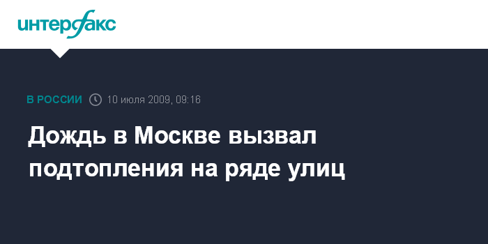 Москва. 9 июля. INTERFAX.RU – Сильный дождь, местами переходящий в ливень, идущий в Москве на протяжении всей ночи и утра, привел к образованию подтоплений на ряде улиц столицы, передает корреспондент "Интерфакса".