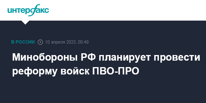 Москва. 10 апреля. INTERFAX.RU - Российское военное ведомство имеет планы по реформированию системы противовоздушной обороны страны, сообщил командующий войсками ПВО-ПРО, заместитель главкома Воздушно-космических сил РФ Андрей Демин.