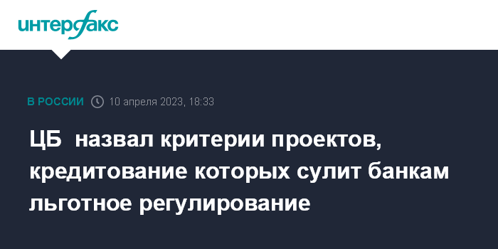 ЦБ назвал критерии проектов, кредитование которых сулит банкам льготное регулирование