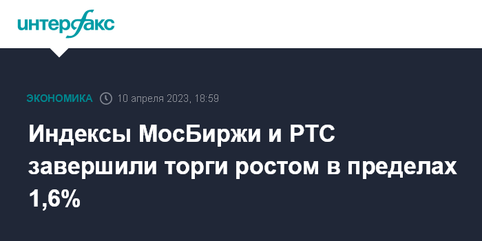 Индексы МосБиржи и РТС завершили торги ростом в пределах 1,6%