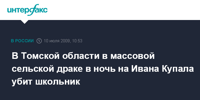 В Томской области в массовой сельской драке в ночь на Ивана Купала убит школьник
