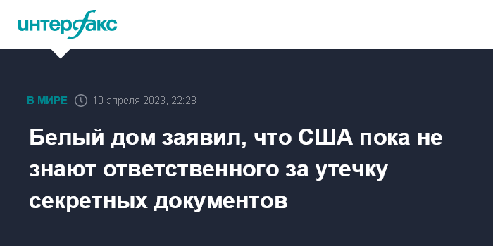 Белый дом заявил, что США пока не знают ответственного за утечку секретных документов