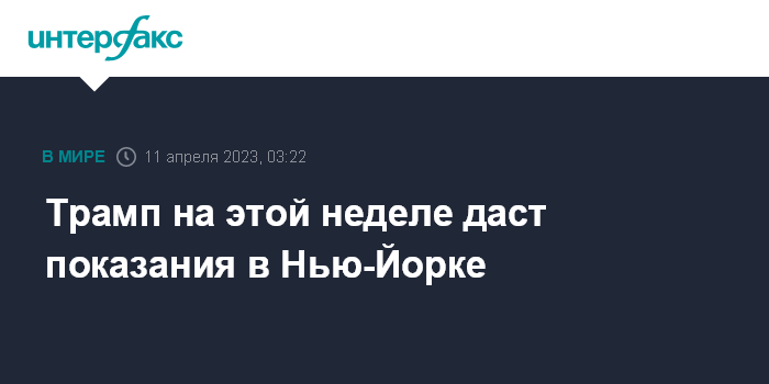 Москва. 11 апреля. INTERFAX.RU - Бывший президент США Дональд Трамп на этой неделе вернется в Нью-Йорк, чтобы дать показания по еще одному делу против него, сообщает телеканал CNN со ссылкой на многочисленные источники.