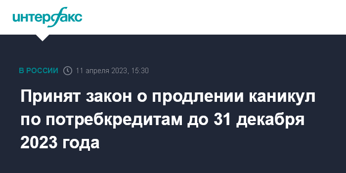 Принят закон о продлении каникул по потребкредитам до 31 декабря 2023 года