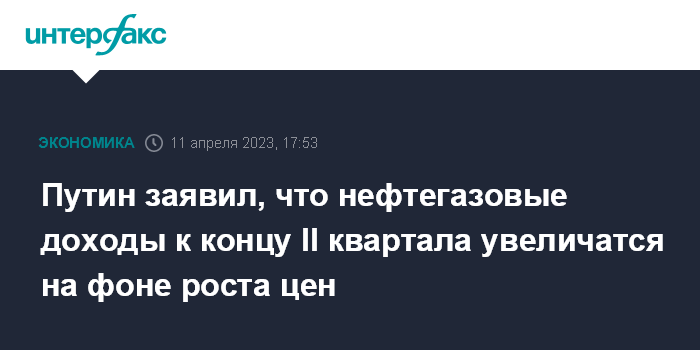 Путин заявил, что нефтегазовые доходы к концу II квартала увеличатся на фоне роста цен