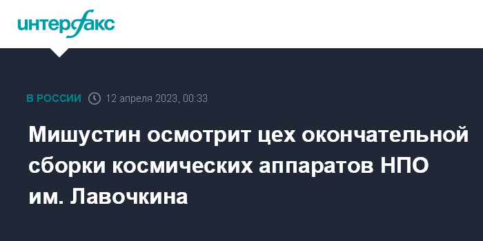 Москва. 12 апреля. INTERFAX.RU - Премьер-министр РФ Михаил Мишустин посетит в среду Научно-производственное объединение (НПО) имени С.А. Лавочкина, сообщает пресс-служба российского правительства.
