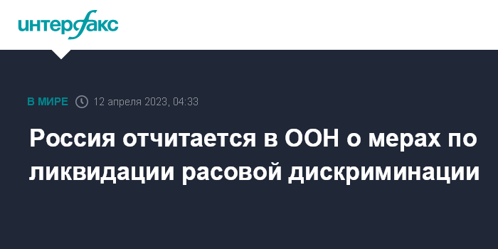 Москва. 12 апреля. INTERFAX.RU - Россия представит ООН доклад о мерах по ликвидации расовой дискриминации, сообщается на сайте Организации.