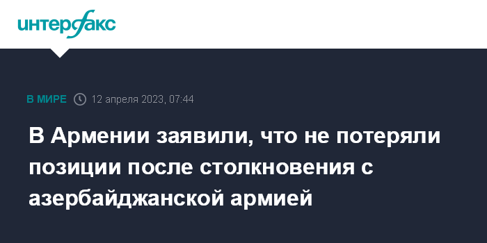 Москва. 12 апреля. INTERFAX.RU - Армянские вооруженные силы не потеряли позиции в результате боестолкновения с военнослужащими Азербайджана в минувший вторник, сообщает Минобороны Армении.
