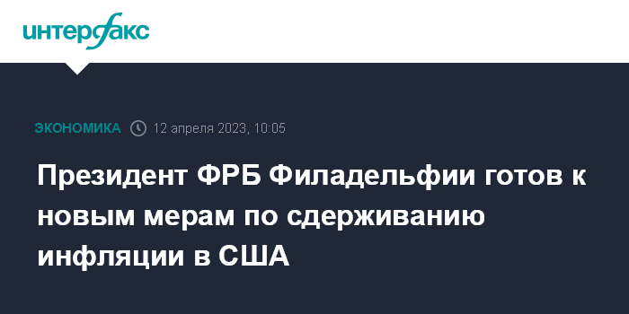 Президент ФРБ Филадельфии готов к новым мерам по сдерживанию инфляции в США