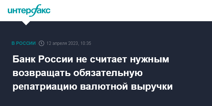 Банк России не считает нужным возвращать обязательную репатриацию валютной выручки