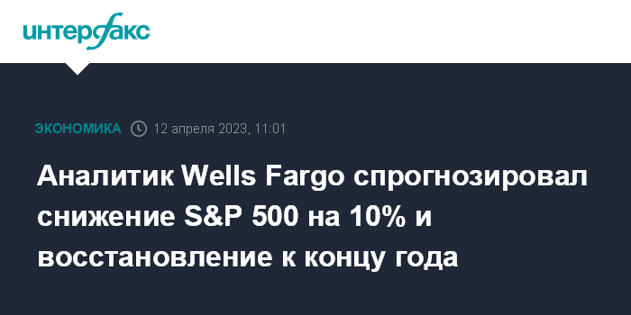 Аналитик Wells Fargo спрогнозировал снижение S&P 500 на 10% и восстановление к концу года