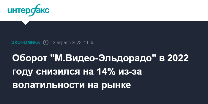 Оборот "М.Видео-Эльдорадо" в 2022 году снизился на 14% из-за волатильности на рынке